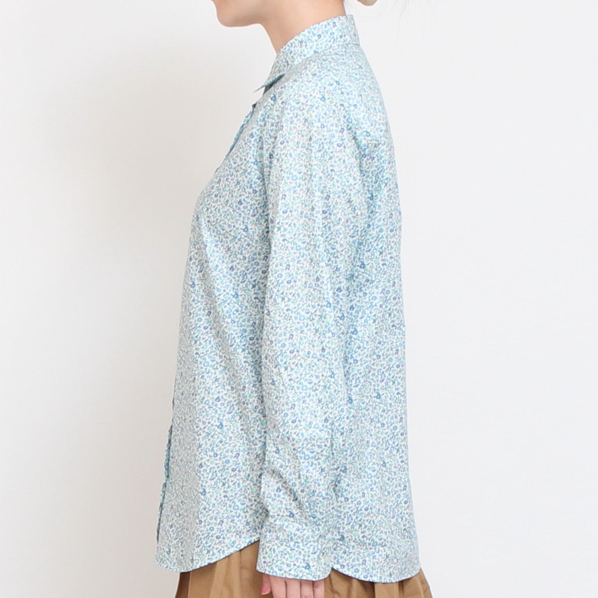 襟ぐりは小ぶりな角襟で女性らしさもありつつ、カジュアルにも使いやすいデザイン。