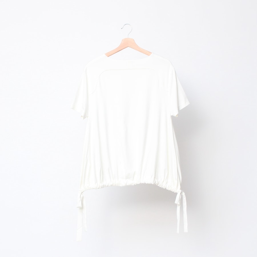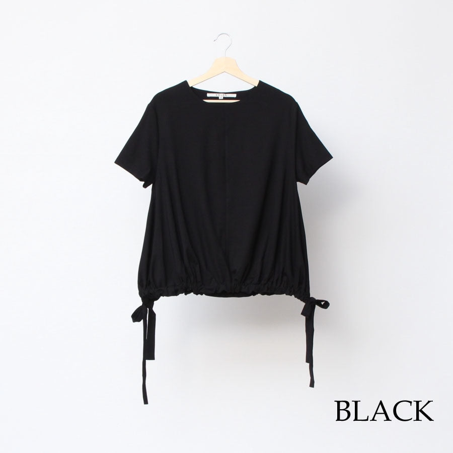 又、リボンの絞りを調節し、ドレープ分量を減らしてワイドパンツやギャザースカートとのコーディネートもオススメです。
