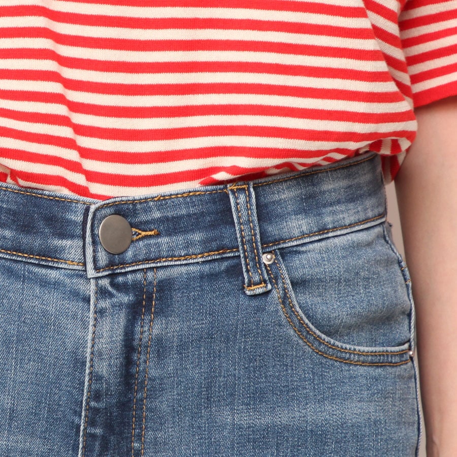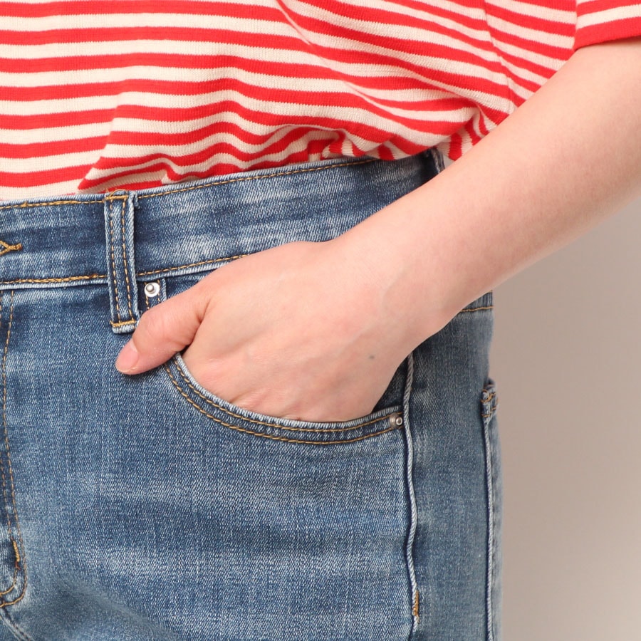 しっかりと伸びるストレッチ性抜群のデニムはとても柔らかく、ウエストも見た目には分からない内側がオールゴム仕様で穿き心地が良いです。