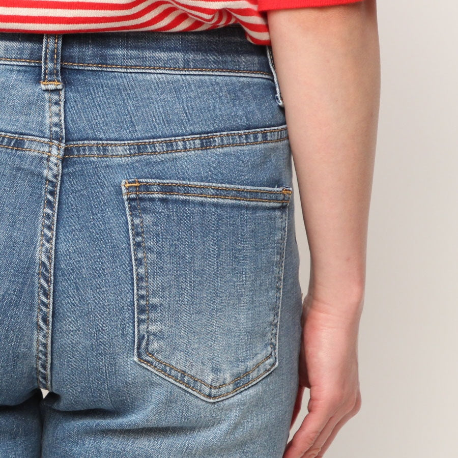 ボーイフレンドデニムですが全体的にすっきりとしているので、ヒップや太股が気になる場合は適度なゆとりを持たせた大きめサイズを、ぴったりがお好みの方は小さめサイズがおすすめとなっております。