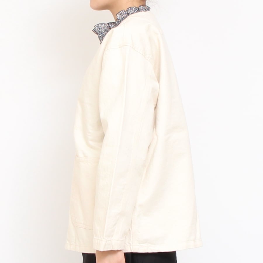 厚過ぎず、通常のデニムアウターよりも柔らかい素材は中にも重ね着がしやすく、ついつい着回しをしてしまうこと間違いなしです。