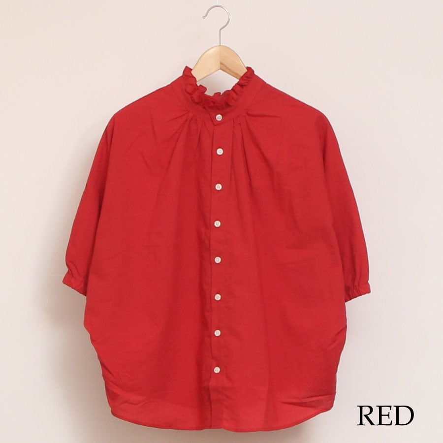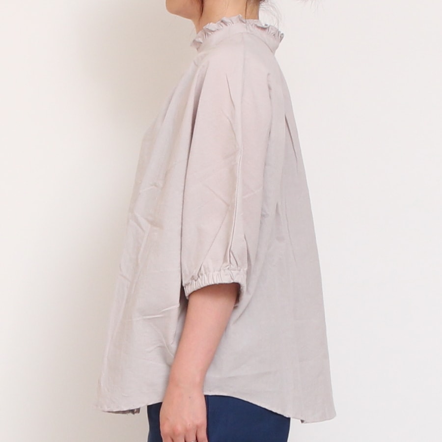 首元のタックギャザーはふわりとした印象にしてくれてお出かけ着としても使いたくなる一枚。