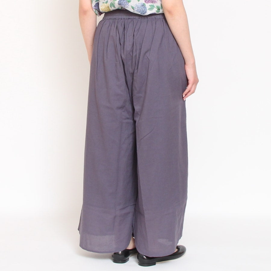 フロントとバックにたくさんのギャザーを施し、裾にかけて広がるワイドシルエットに仕立てられています。