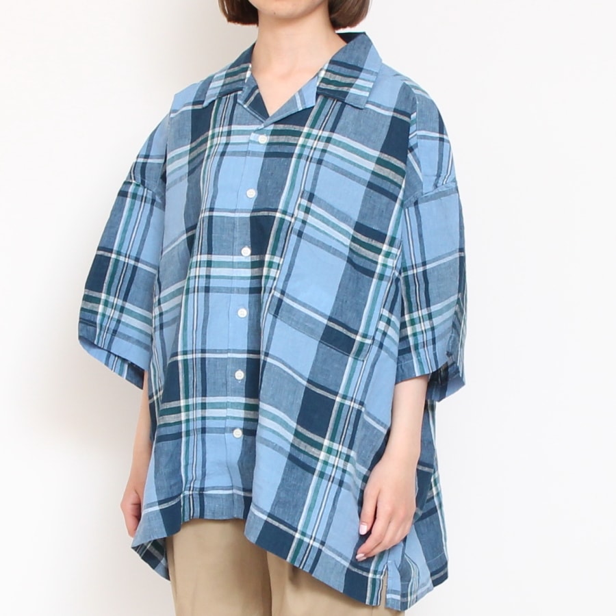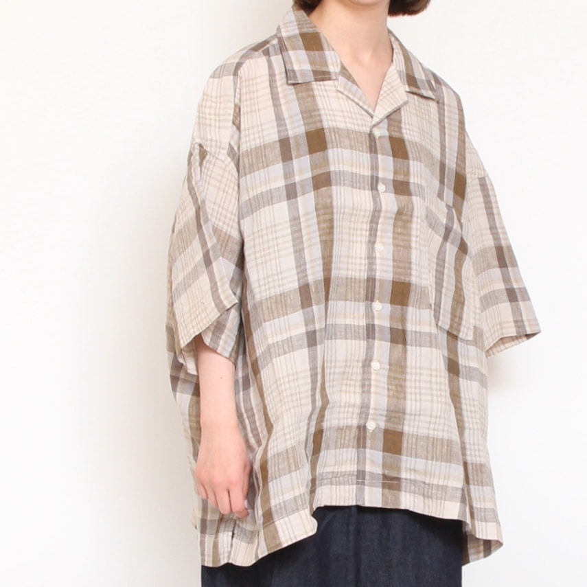 【再値下げ】HARVESTYチェックリネン半袖ジャンボシャツ