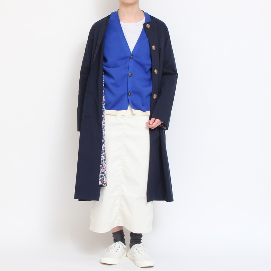 ポイントは袖口と裾のカラーの切替。シンプルなアイテムと合わせても様になり、リバティなどの柄物と合わせてもバランスが取れます。