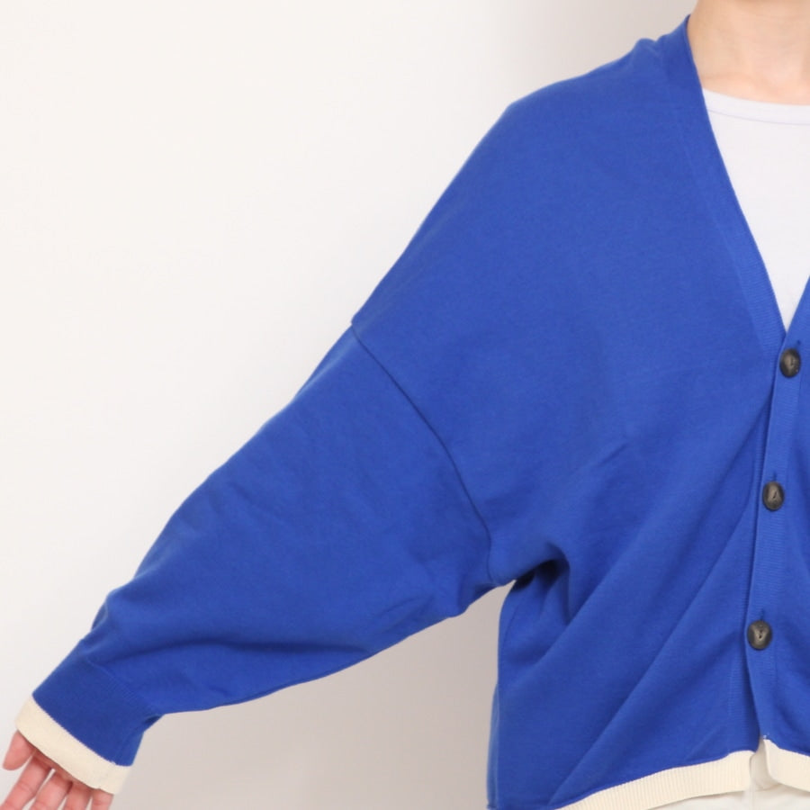 【BLUEのみ】NARUリブバイカラーVネックカーディガン