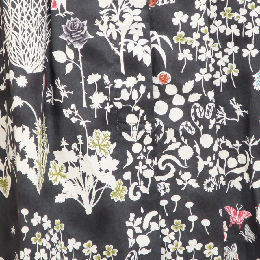 イラスト調の手書きの柄で、地色に薄い染めを施した凸凹感のあるベースに、繊細なカンバセーショナル柄を驚くような線づかいで描いています。グラフィックデザイナーであり、自身でイラストも手掛ける渡邉良重さんによるデザインです。