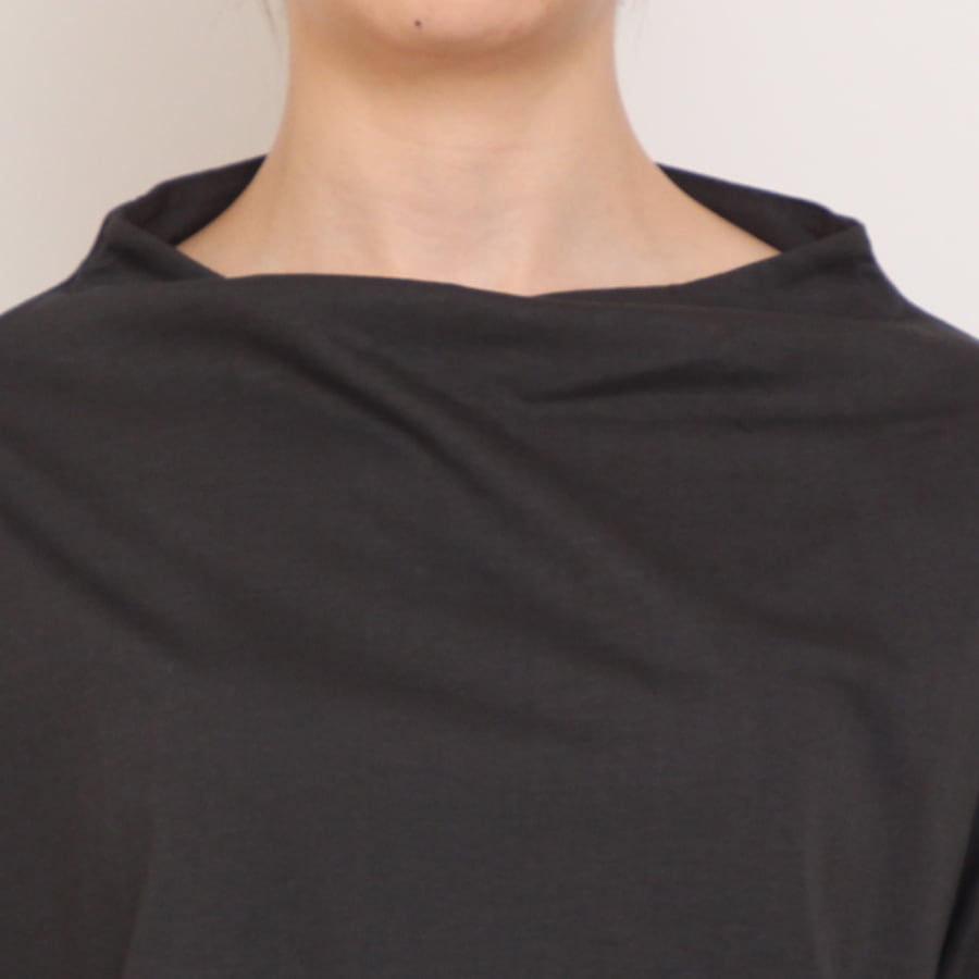綿100%でありながらしっかりとしたハリ感があり、自立したボトルネックが首元を綺麗に見せてくれます。