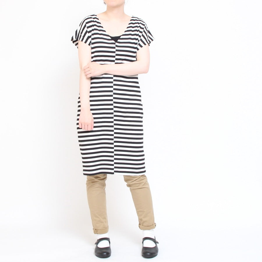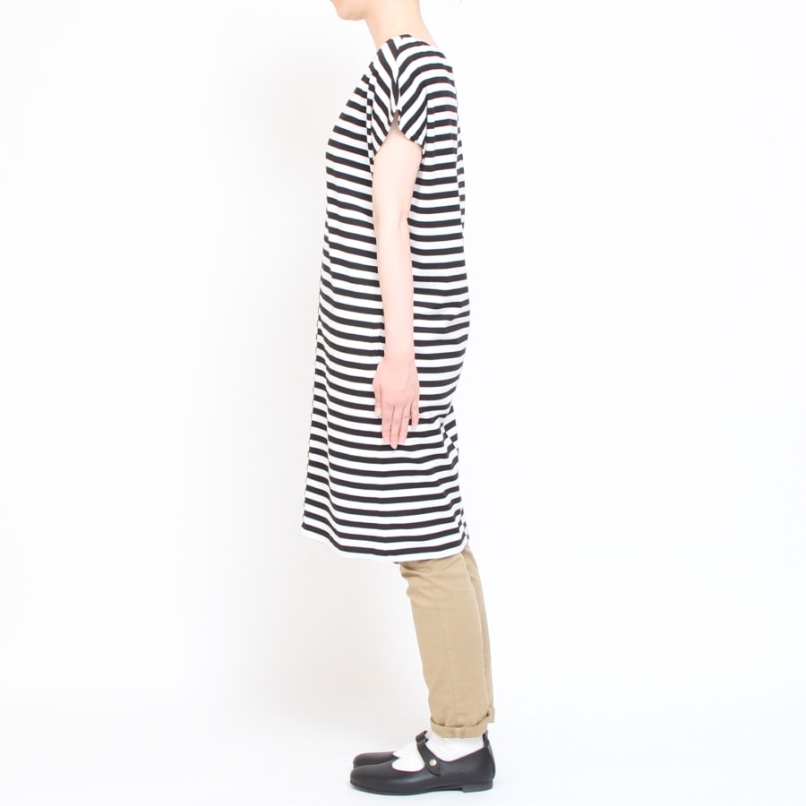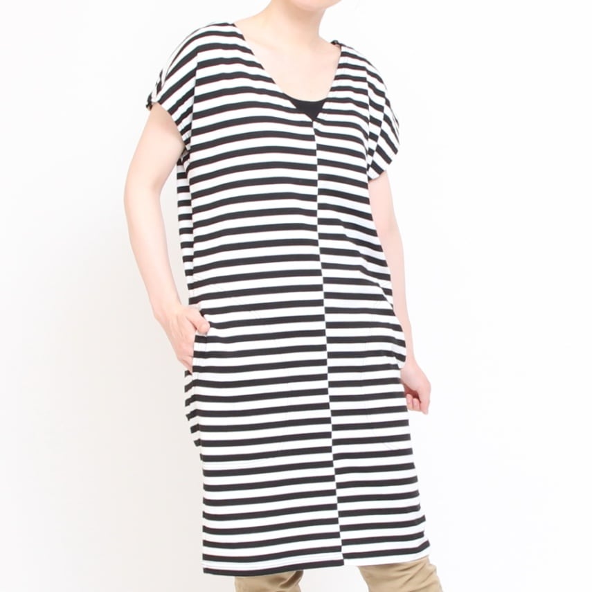 シンプルな白黒のボーダーなので飽きずにお召しいただけます。