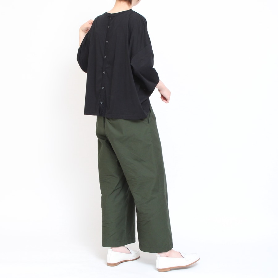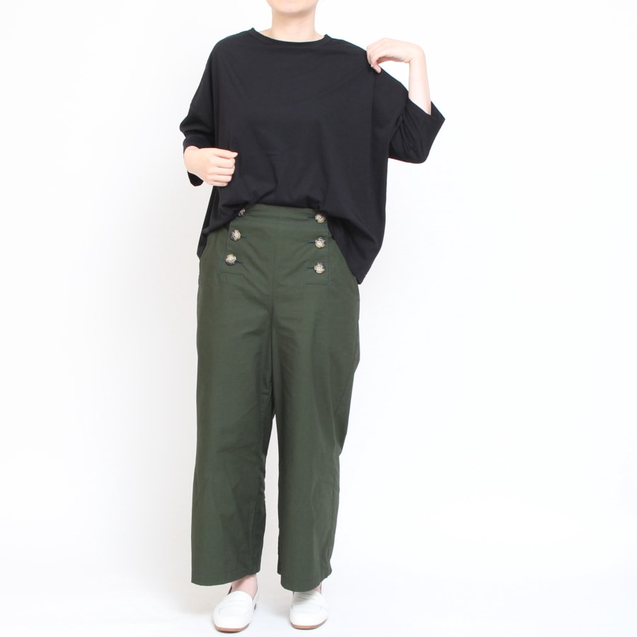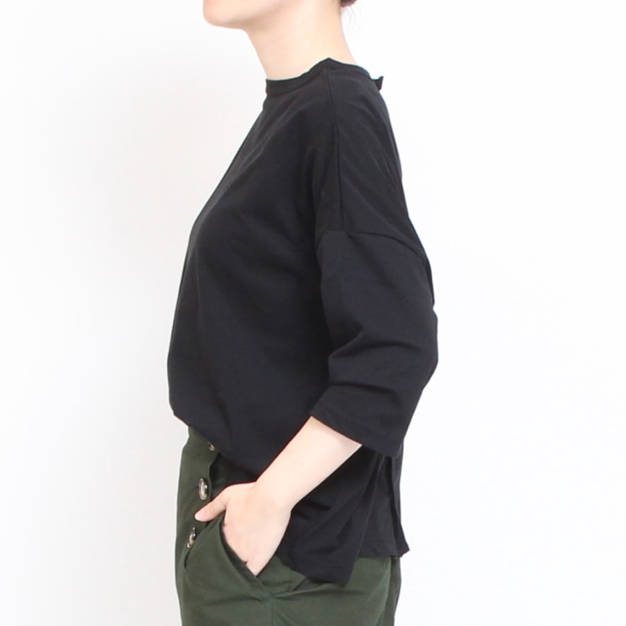 襟ぐりはクルーネックでお顔周りをすっきりと見せてくれます。