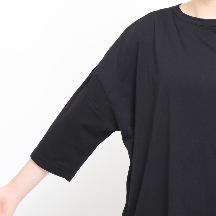 袖ぐりはドロップショルダーで袖通しも楽。袖幅もゆとりを持たせているので、気になる二の腕もカバーしてくれます。