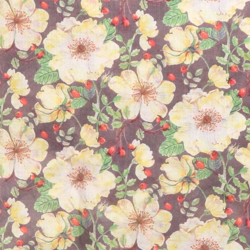 リバティ・ファブリックスのアーカイブに保管されていた小さな紙サンプルにあったデザインから描かれた柄です。
