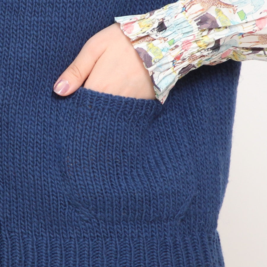 肩も少しかかるデザインなので首元も肩も暖かく、中にハイネックと合わせても素敵です。