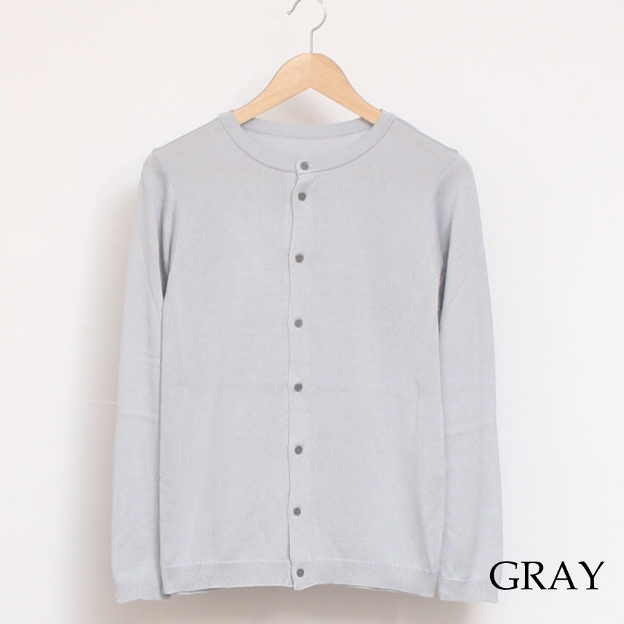 厚みを抑えたさらりとした着心地で年中お使いいただける優秀カーデ。