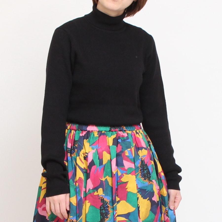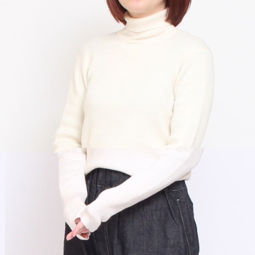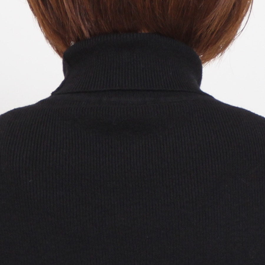 襟ぐりのタートルは詰まり過ぎず、折り返してもそのままくしゅっとさせてもバランスの取れる仕様。