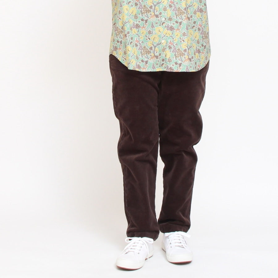 伸びが良く、保温性の高い裏起毛素材を使用した細畝のコーデュロイ素材。