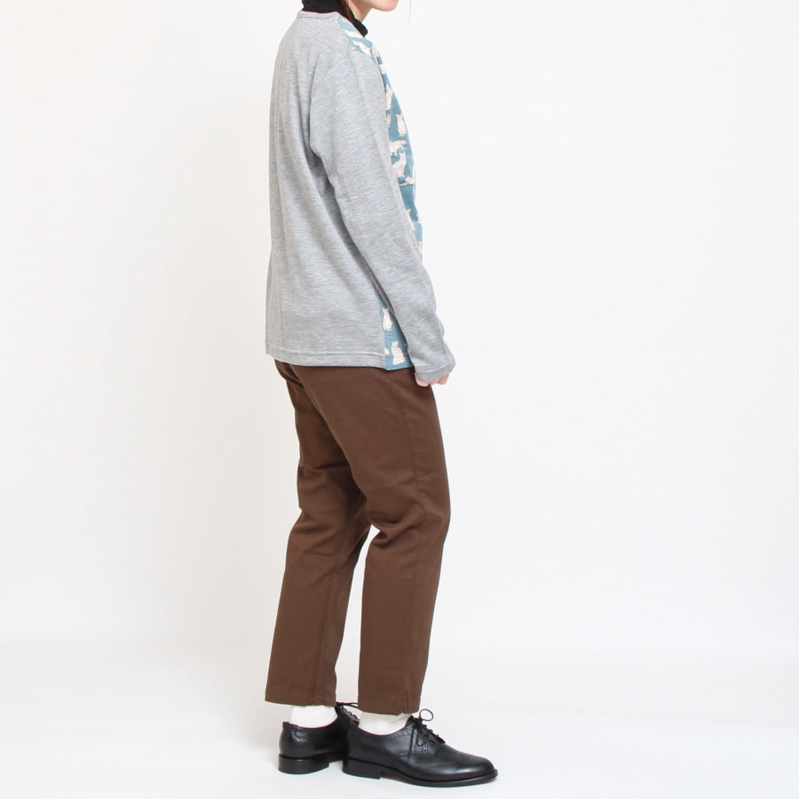 袖や後ろは無地のウールポンチ素材を使用したカーディガン。