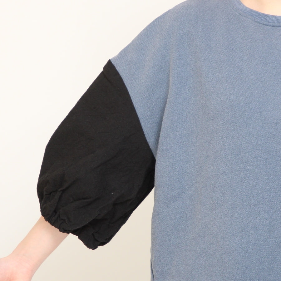 ふんわり軽い裏毛とシーチングワッシャーのシャツ素材をドッキングしたプルオーバー。