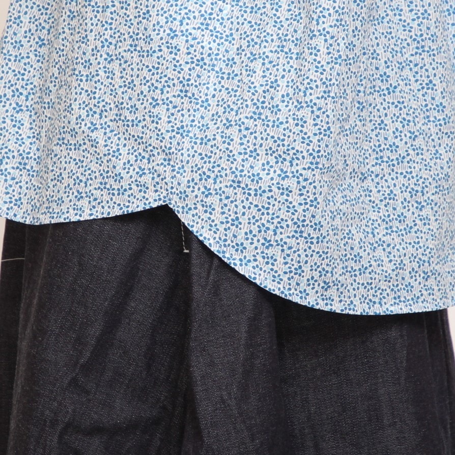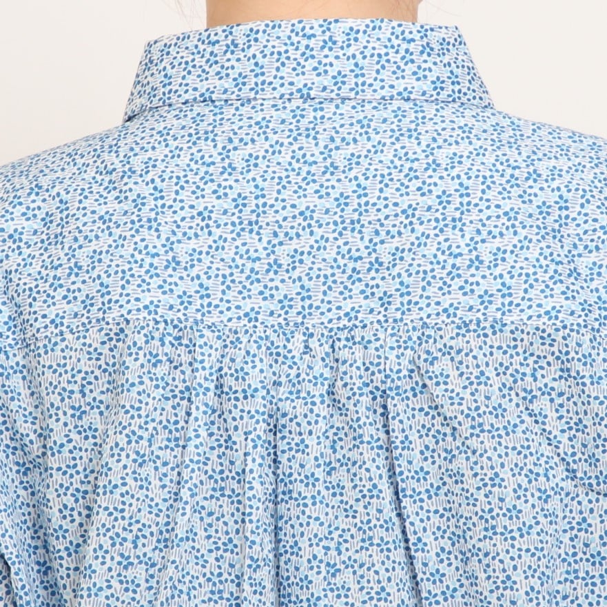 前身頃は両肩部分、後身頃はヨーク下からギャザーが施されており女性らしい印象です。