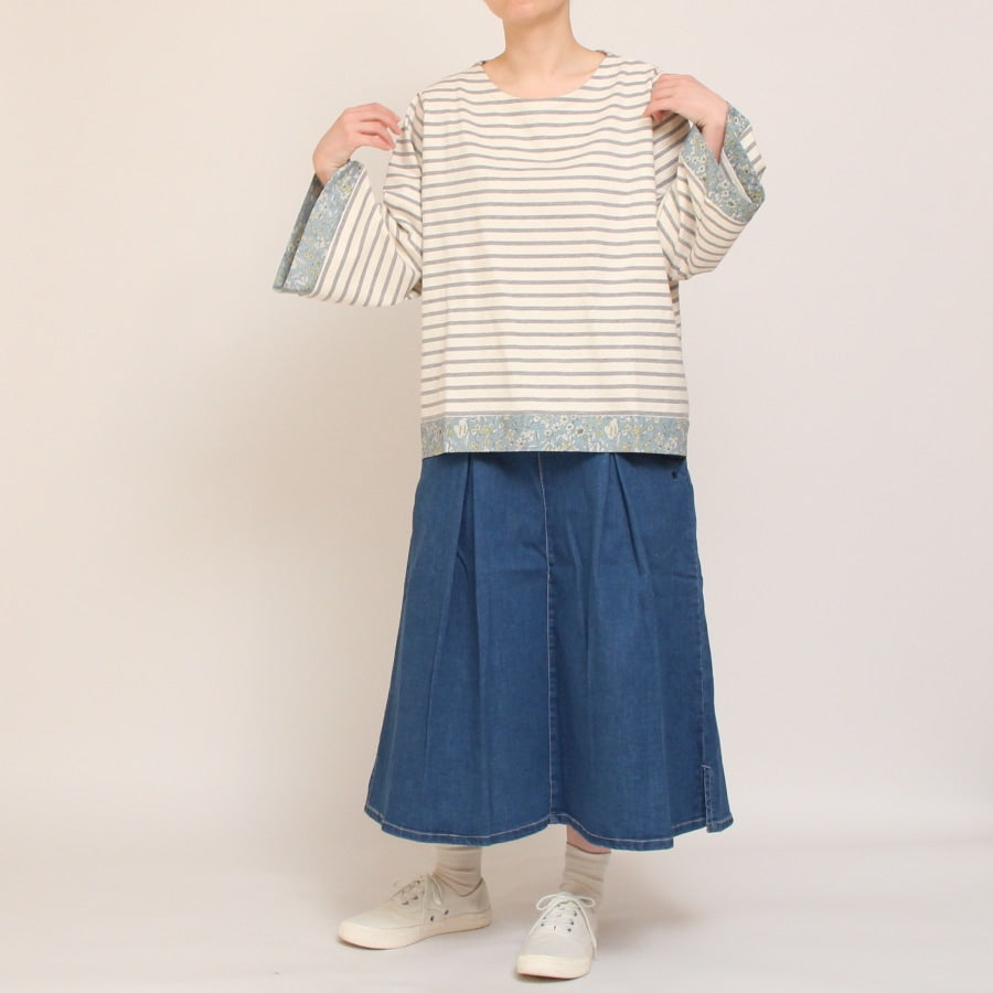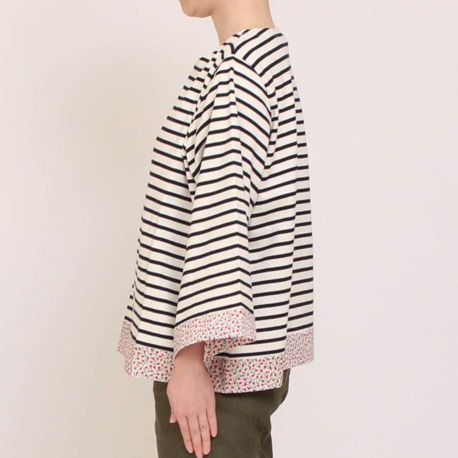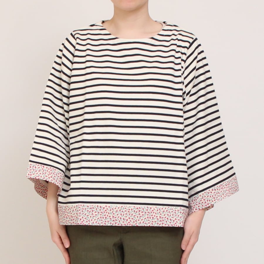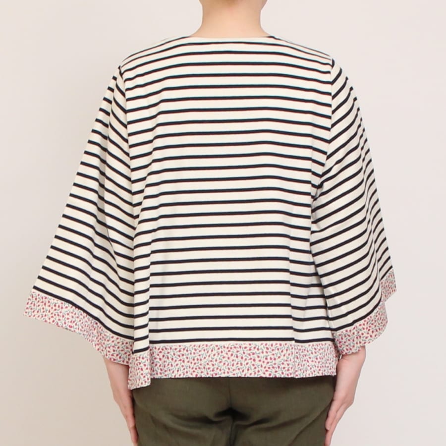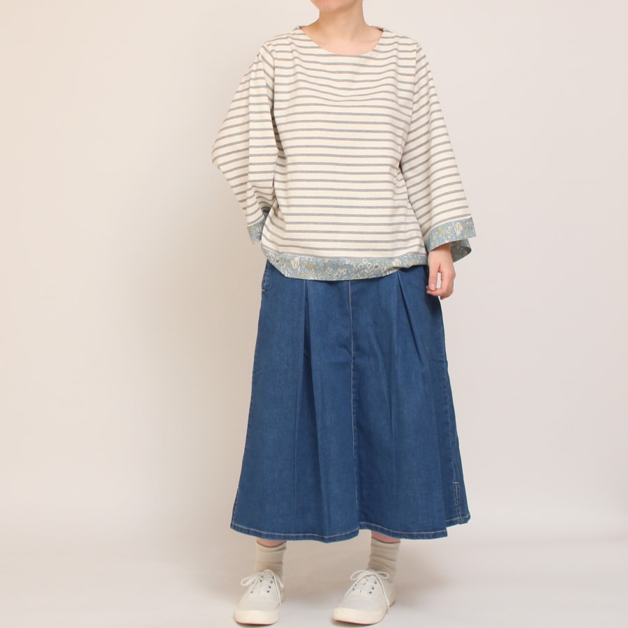 裾や袖口にリバティタナローン生地を合わせた