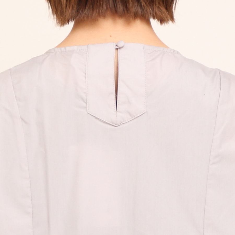袖口には太幅のパーツをつけ体から離れるシルエットにした、