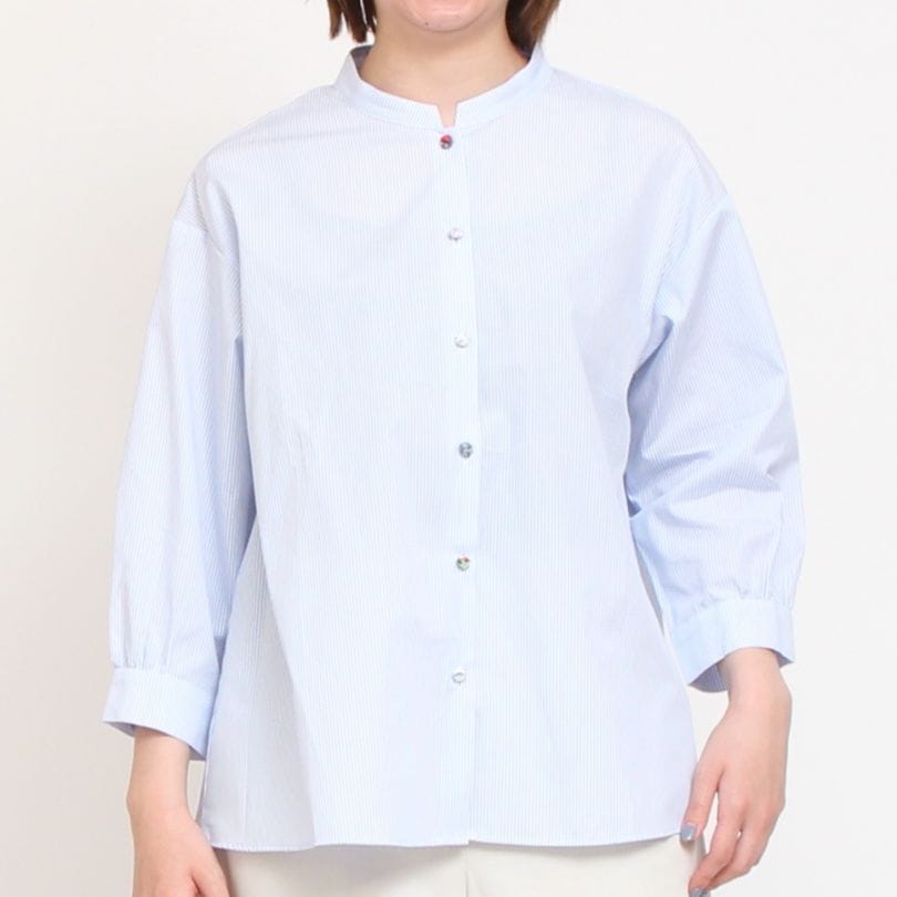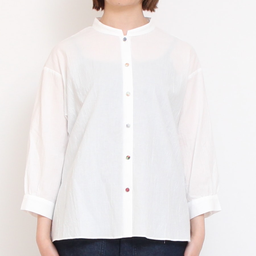 【WHITEのみ ラスト1点】リバティ釦7分袖マオカラーシャツ(2506)