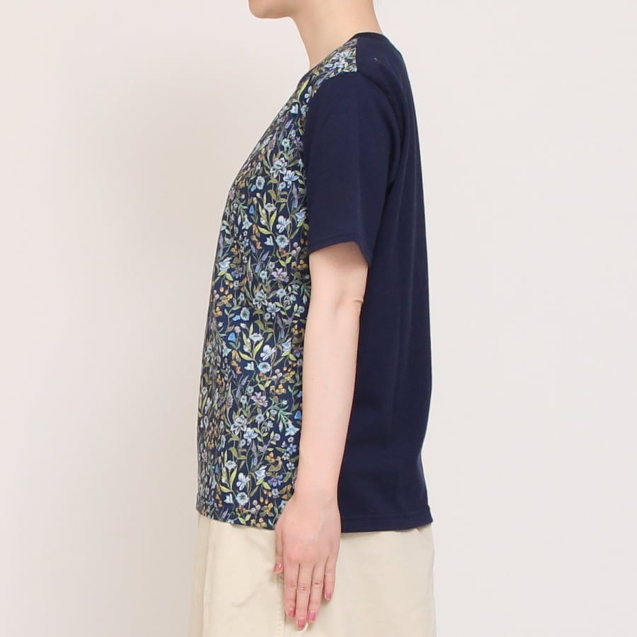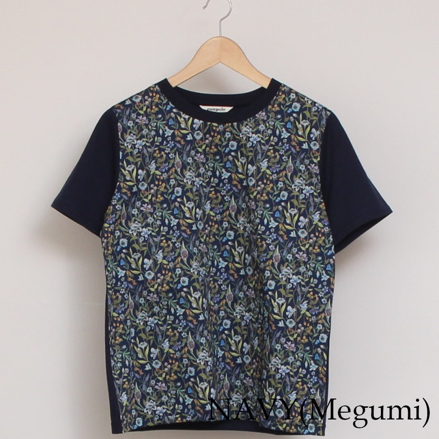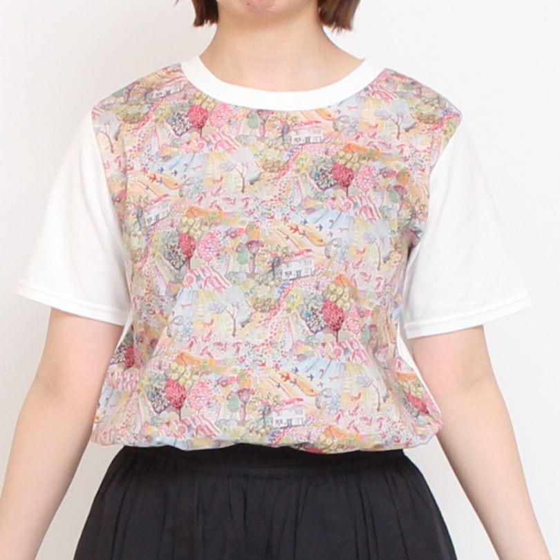 後身頃や袖には着心地の良い無地のカットソー素材を組み合わせたTシャツのご紹介。