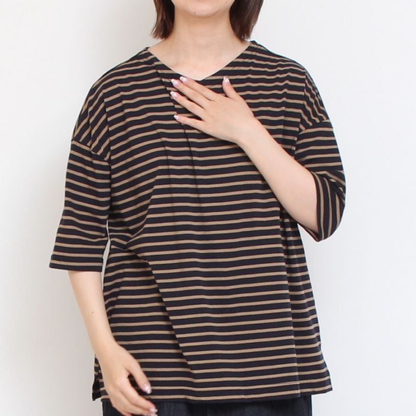 落ち着いた配色が魅力の、飽きのこない大人のボーダーカットソー。