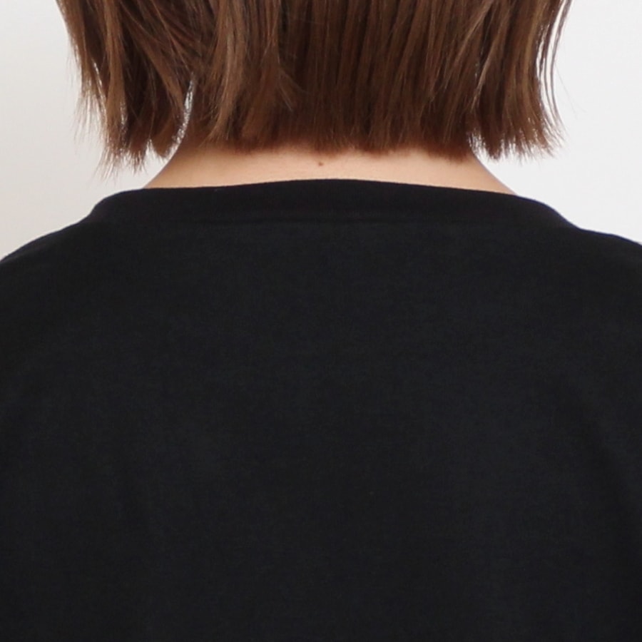 襟ぐりはスタンダードなクルーネックで首元をきれいに見せてくれます。