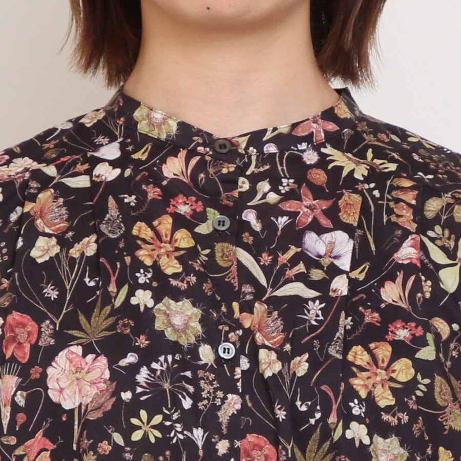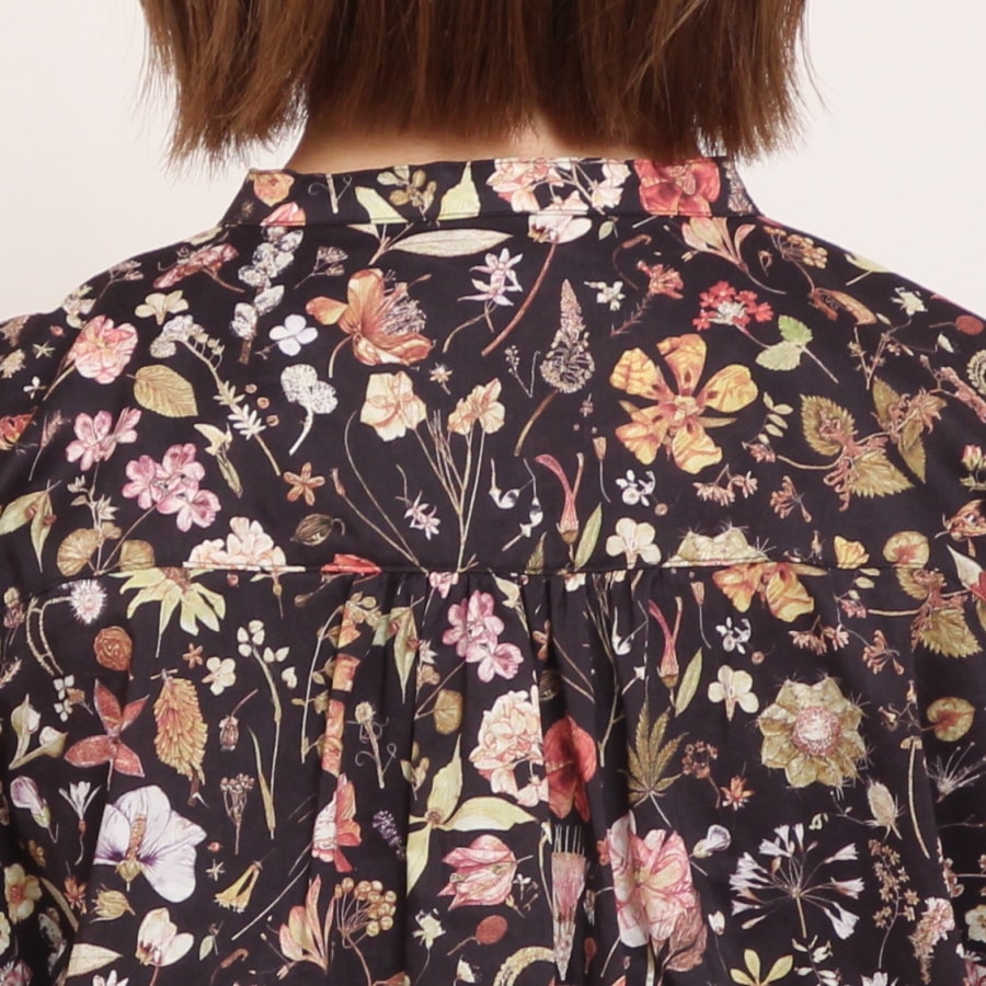襟ぐりはバンドカラーで幅が狭めなので女性らしい雰囲気を作っております。