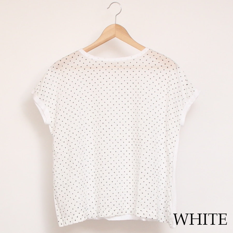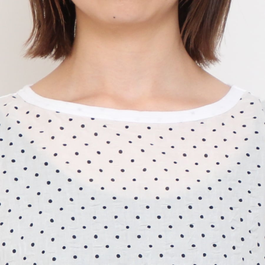 細かいドット柄で上品な印象に仕上がる80ローンリップルシンプルドットゆったりブラウスです。