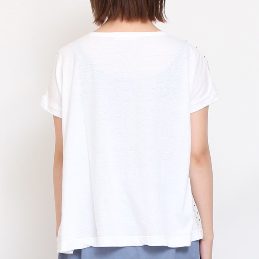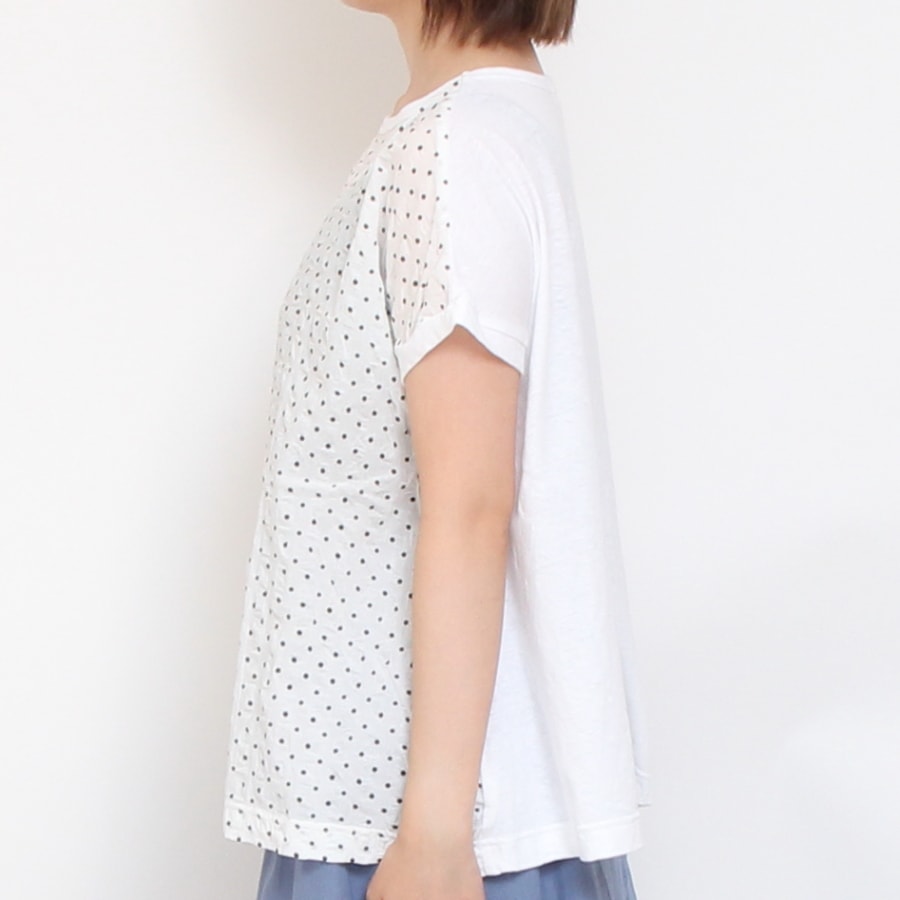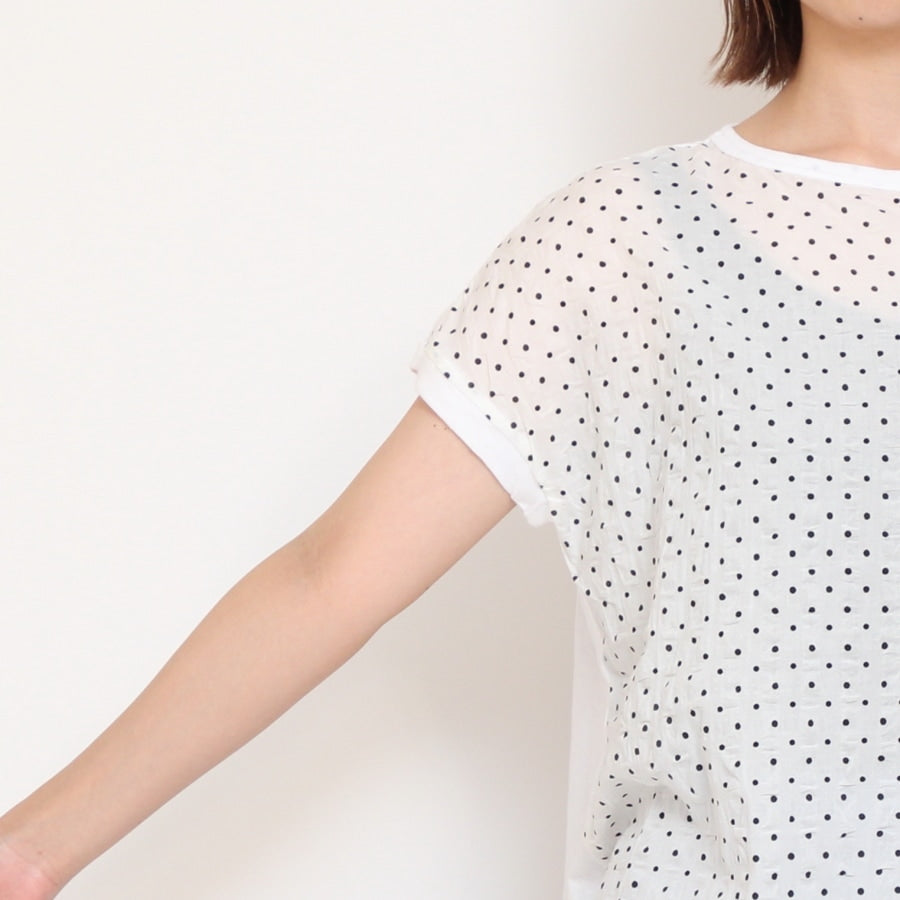 汗ばむ季節でも肌離れが良く、清涼感ある着心地はTシャツとブラウスの間のデザインとして