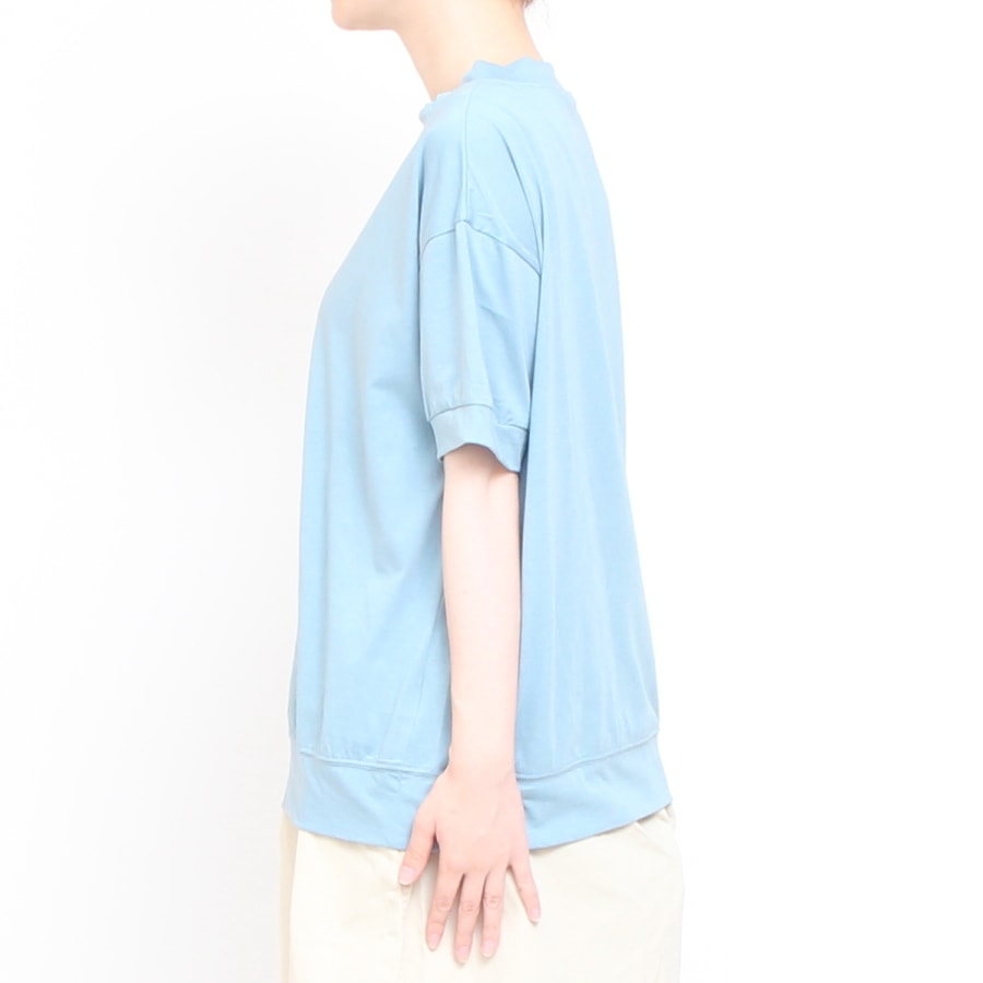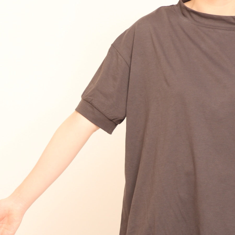 襟ぐりは控えめな立ち上がりのハイネック。首元をすっきりときれいに見せてくれます。