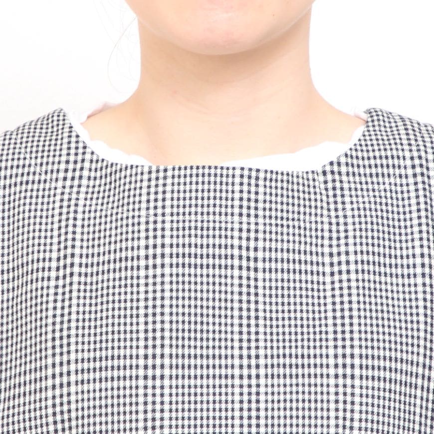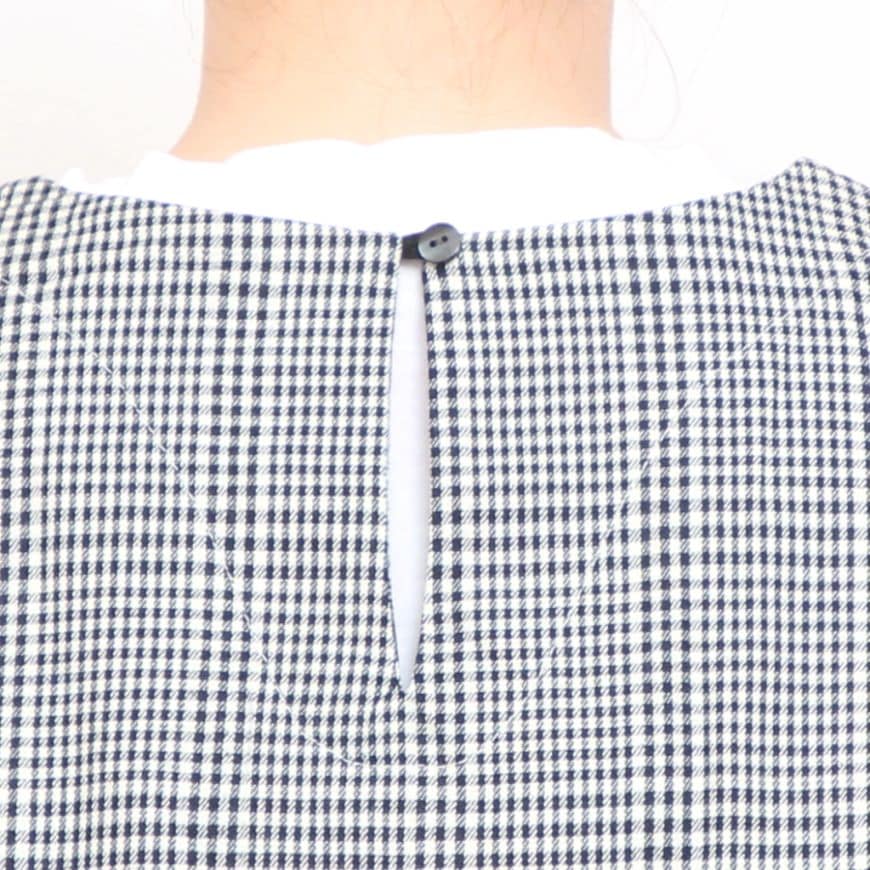 襟ぐりは少し詰まったクルーネック。バックネックは涙空きで女性らしい印象です。