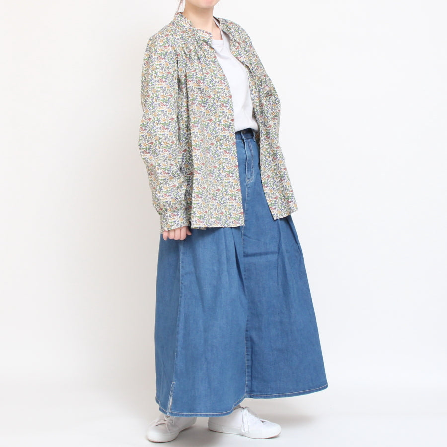 暖かい季節についつい着たくなるBLUEはリバティと合わせて大人のカジュアルコーデを楽しんでいただけます。