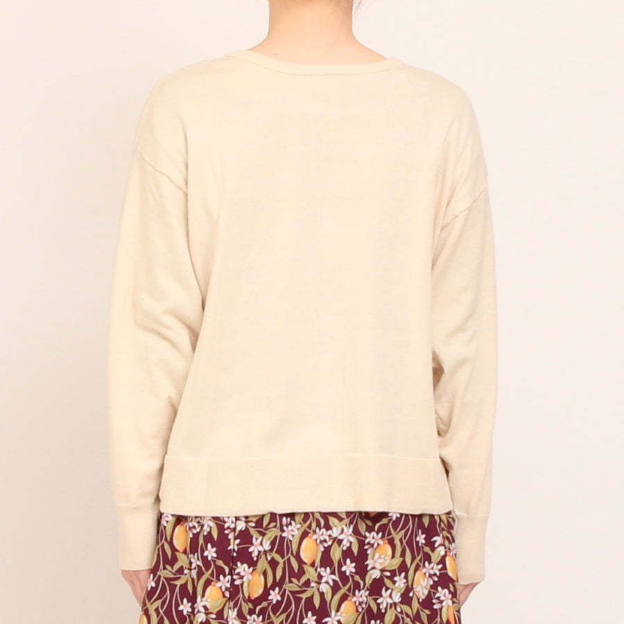 プルオーバーとしても後ろボタンがアクセントになり可愛く着られます。