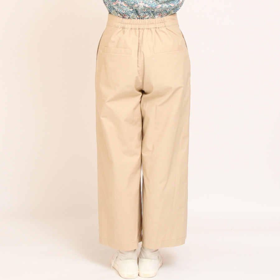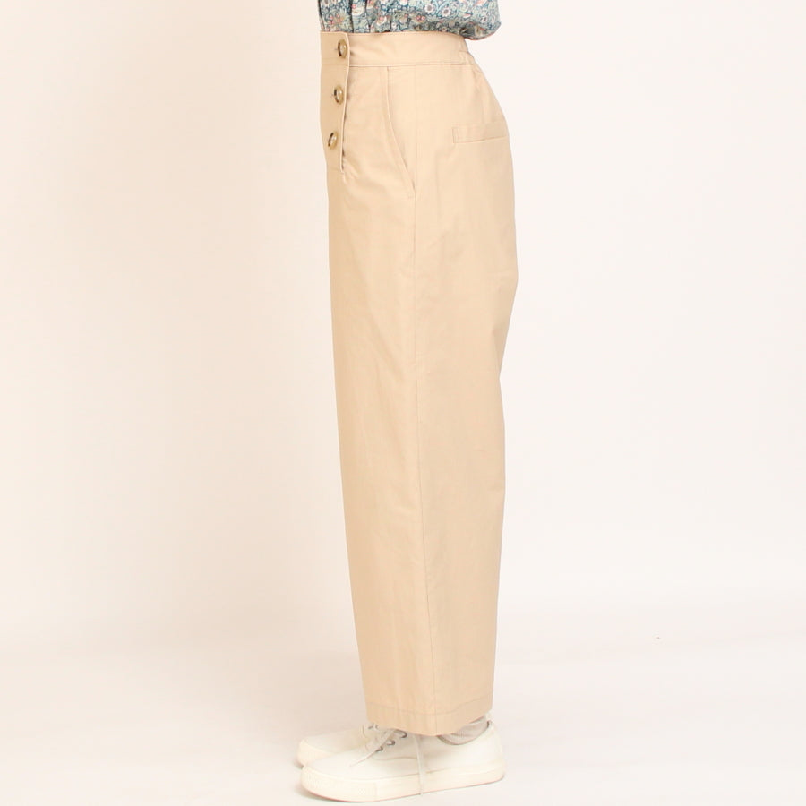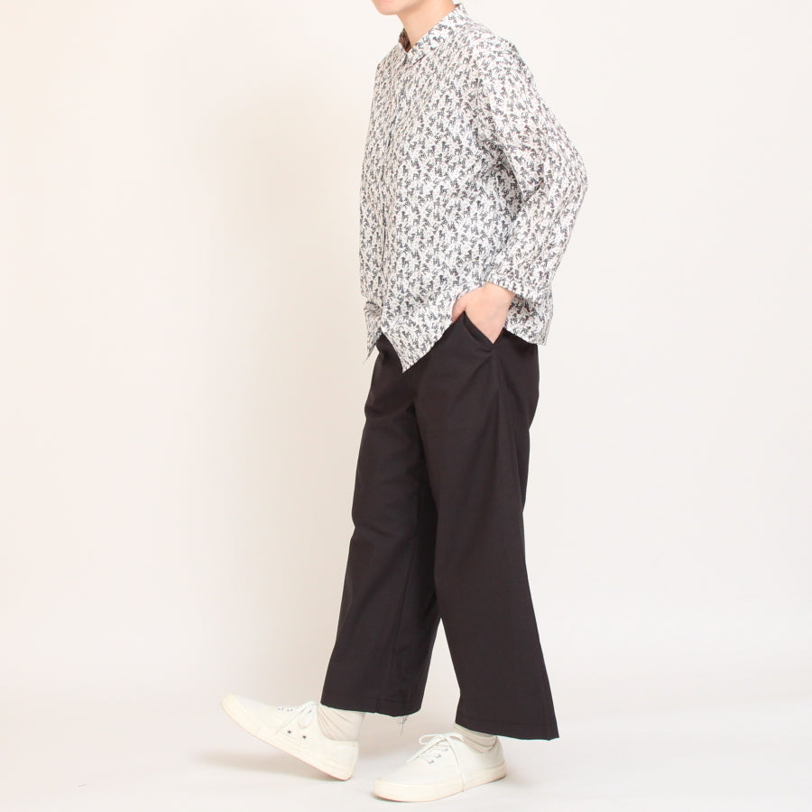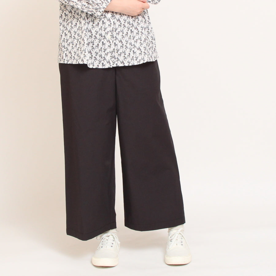 ハイウエストの収まりと、ほどよいワイド感はトップスをインにして着用するとすらっとした印象を。